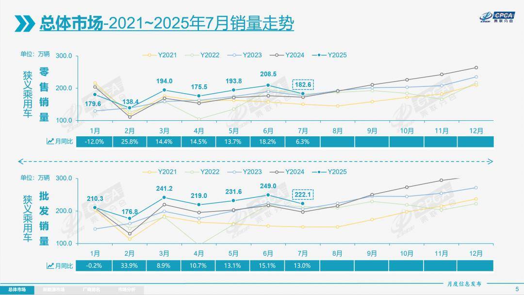 8月8日◈★ღ,乘联分会发布最新月度乘用车市场分析◈★ღ。数据显示◈★ღ,2025年7月全国乘用车市场零售销量为182.6万辆◈★ღ,同比增长6.3%◈★ღ,环比下滑12.4%◈★ღ。其中◈★ღ,新能源乘用车市场零售为98.7万辆◈★ღ,同比增长12.0%◈★ღ,环比下滑11.2%◈★ღ。截至7月底◈★ღ,今年前7月全国乘用车市场累计零售销量为182.6万辆◈★ღ,同比增长6.3%◈★ღ,环比下滑12.4%◈★ღ。其中新万博亚洲◈★ღ,新能源乘用车市场累计零售为645.5万辆◈★ღ,同比增长29.5%◈★ღ。